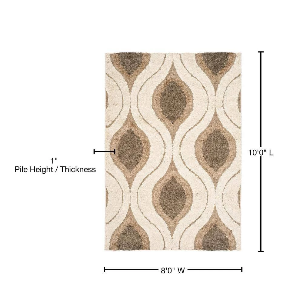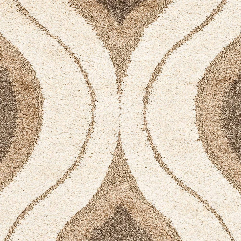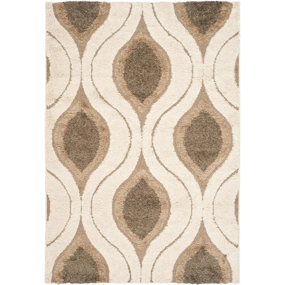 Inspired by the influential Miami art scene, this geometric patterned Florida shag by Safavieh is truly a decorative display for home decor. Concentric hourglass designs, painted in cream, beige, and smoky grey hues, stretch across this plush shag rug to bring ’70s era flair to both modern and transitional decor. Constructed using power-loomed cut and looped synthetic yarns for flowing dimension and rich textural appeal.