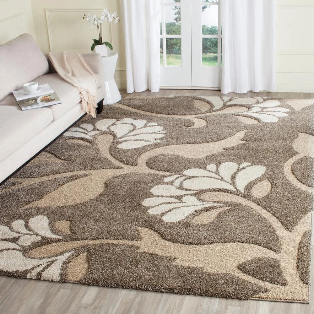 Inspired by the easygoing lifestyle of the Florida Keys, this shag by Safavieh displays beautiful botanical prints in warm, neutral color tones. A raised high and low beige pile artfully accentuates grand floral motifs, painted in a vibrant cream, for luxurious textural appeal. Power-loomed using long-wearing synthetic fibers for an easy-care carpet ideally styled for contemporary or rustic-chic decor.