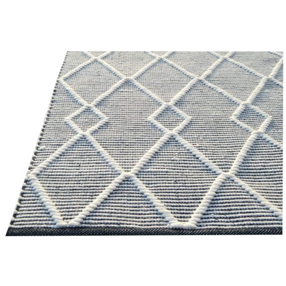 A simple, geometric diamond design makes Maeve amenable to any room’s motif. The use of two different natural fibers allows for both versatility and fashion in these rugs. Shades of grey and blue are softened by blending an ivory yarn, making for an easily accommodating decorative piece. The beautiful, loop-braided weaving alongside the edges with a solid border on top and bottom gives these rugs the ideal casual-chic look.