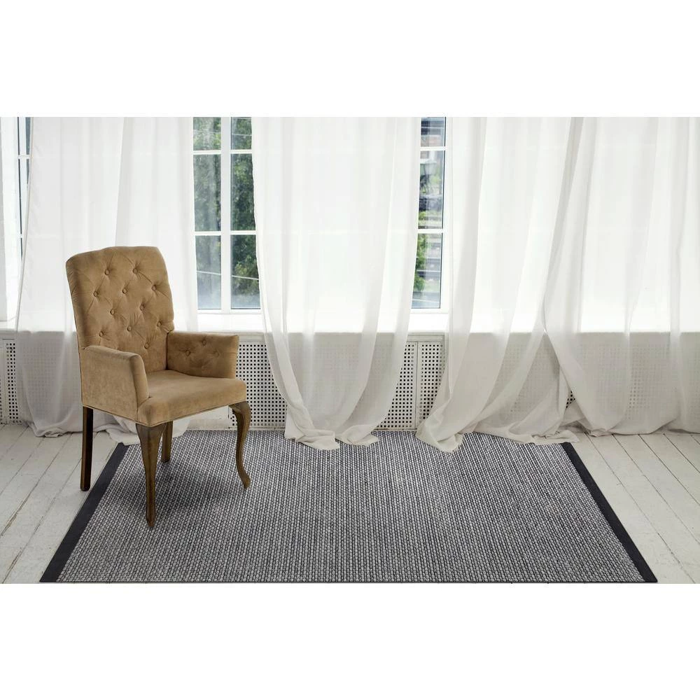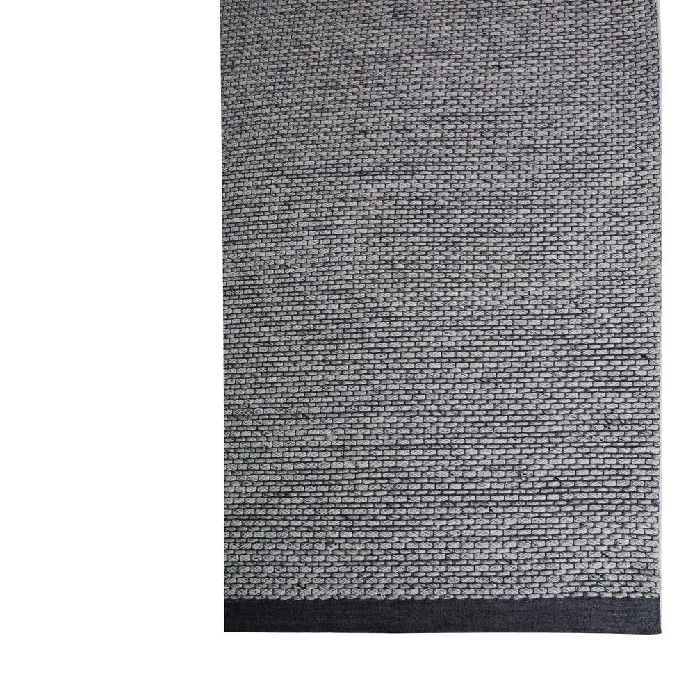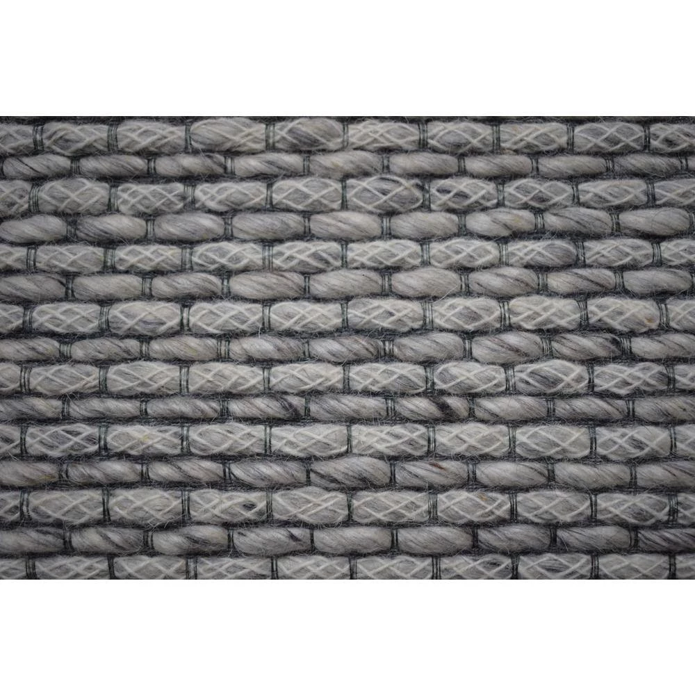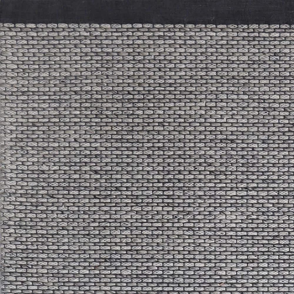 A simple design consisting of small blocks broken apart by careful weaving makes Vici amenable to complement any motif. Interwoven loops with a delicate yarn weaving between create an elegant and unique pebbled texture underfoot. The ivory, black, and grey color palette can complement both a neutral room setting or contrast-in an enlightening way-a colorful room setting. The deep black border on both ends contains Vici in a way that designates it as a statement piece.